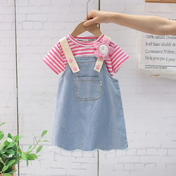 Güneşli bebek yürüyor kız giysileri setleri yaz kısa kollu üstleri Denim kayış etek 2-piece kız giysileri setleri