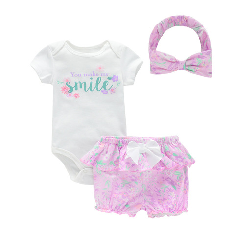 Sıcak satış ürünleri yaz yeni stil bebek giysileri kısa kollu yenidoğan bebek giysileri bebek kız tulum üç parçalı Set