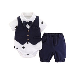 Güneşli bebek erkek 0-1T yaz beyefendi giyim kısa kollu şort tulum + şapka takım elbise bebek giyim setleri yenidoğan giysileri
