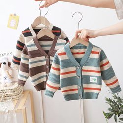 Güneşli bebek sonbahar ve kış yeni moda bebek yürümeye başlayan erkek çizgili v yaka hırka kazak dış giyim