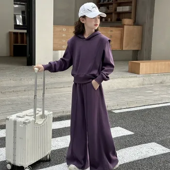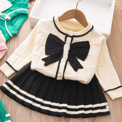 Sonbahar ve kış aylarında kızların kazak takım elbise batı tarzı ve çocuklar için kore moda ile yeni bir iki parçalı takım elbise
