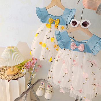 Güneşli bebek 0-3T yaz yeni stil küçük taze kızların pamuklu bez orta yaşlı çocuk çiçek elbise