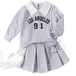 Güneşli bebek 2-7 Yeas alfanümerik baskılı uzun kollu kazak ve pilili etek ile avrupa ve amerikan kızların takım elbise